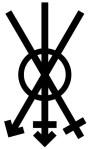 The break down is of course the masculine and feminine symbol for trans men and women, the combined symbol for genderqueer identities and the circle crossed by the lines for nonbinary genders. The direction of the lines implies movement, striking out in multiple directions.