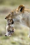 Always reblog big kitties with their leetle kitties.