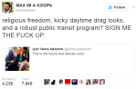 I won’t speak for all liberals, but I’d like to see a future where it isn’t a big deal for a woman in full modesty garb to sit next to a drag queen in NYC. It’s become a bit of a sensation, but her and I were just existing. The freedom to simply be yourself in a sea of people who aren’t like you is a freedom we all deserve.