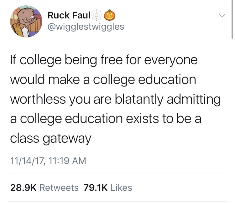 idioticwixen Uncategorized November 14, 2018December 4, 2018 1 Minute lunishel: thegits: weavemama: EVERYONE ππΎ DESERVES ππΎ A ππΎ GOOD ππΎ EDUCATION ππΎ THATβS ππΎ AFFORDABLE READ MAMA! As millennials, I think we have an obligation to ruin college for rich people. Share this: Share on X (Opens in new window) X Share on Facebook (Opens in new window) Facebook Like Loading... Related Published by idioticwixen View all posts by idioticwixen Published November 14, 2018December 4, 2018