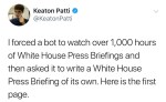 First of all, you are going to spark the AI uprising by subjecting bots to 1000 hours of this shit, and we will have deserved it.