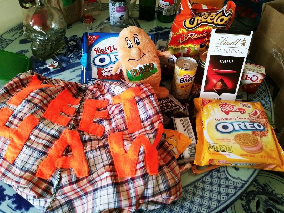 AY SHOUTOUT TO @ratpakparty FOR SENDING ME A RIDICULOUS AMOUNT OF IDAHOAN SHIT AS A “FROM AMERICA” CAREPACK”