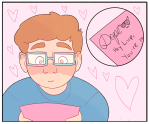 [Image description from @magnus-mcelroy: A panel comic of Barry Bluejeans, Lup Taaco and Taako Taaco from “The Adventure Zone: Balance.” In the first panel, Barry, a young man sitting in a classroom, is at his desk, trying to write a letter, the crumpled drafts at the side. In the panel beside it, he holds the finished letter in his hands, in an envelope with a small, red heart sealing it.