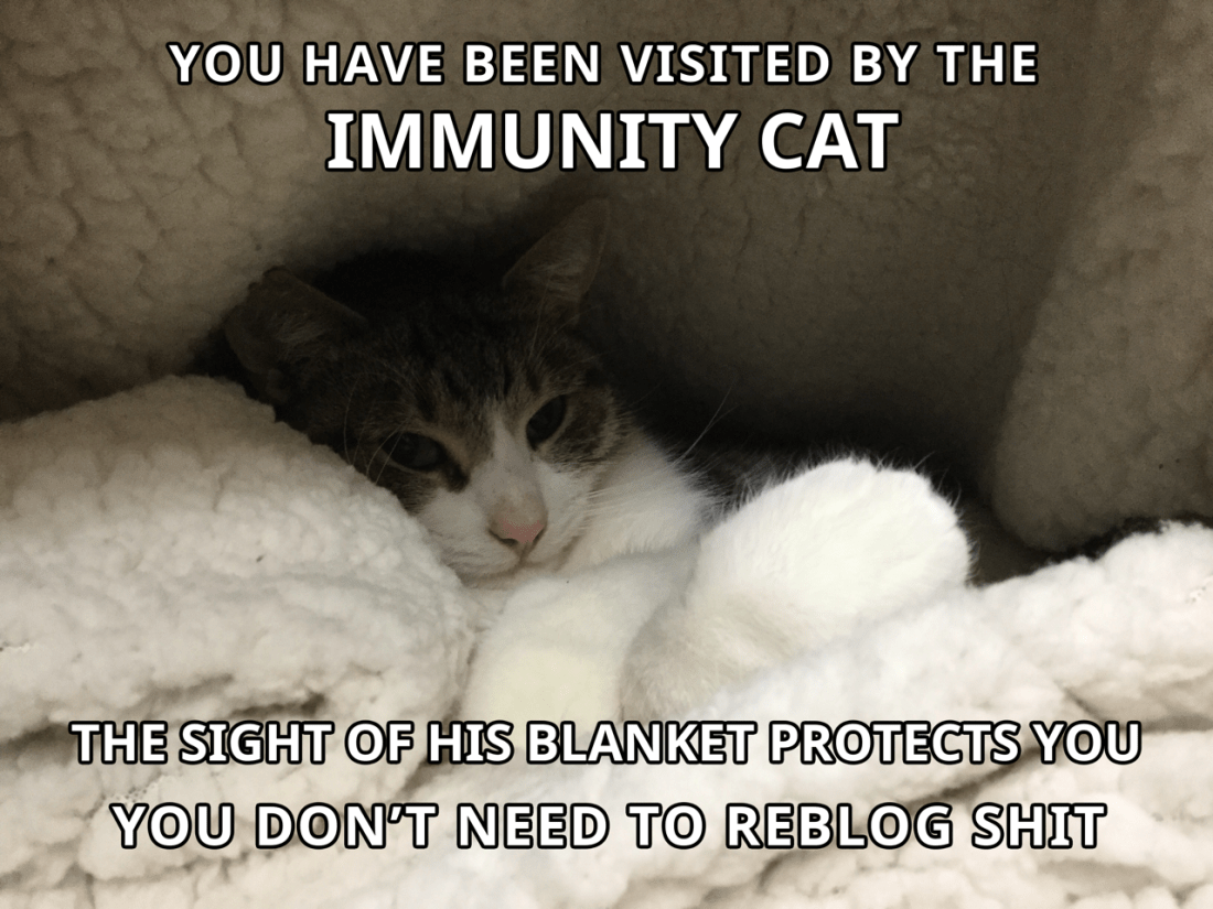 No-one needs to reblog bupkis.I want to be as cozy as immunity catte.