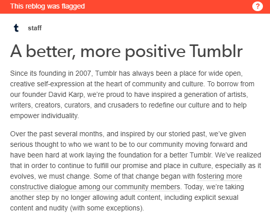 ah yes, tumblr is “banning porn”, you know, “““porn”““, like that one time they had their bots tag basically all lesbian and trans blogs as ““““““porn”““““. i truly trust the clowns who run this website to not literally fuck this up in the most heinous way imaginable while desperately begging for apple to restore their shitty app